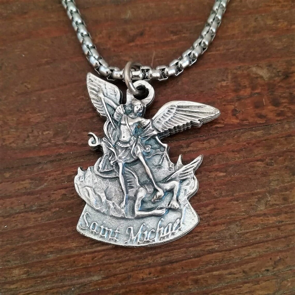 Sterling Silver St Michael Pendant . men's 925 sterling silver saint michael antique finish pendant, 36mm. He is venerated in christianity, judaism, and islam as one of the higher. Michael with 20 inch rhodium plated chain. Draw courage with this.925 sterling silver saint michael u.s. 1 3/8 x 1 1/4. check out our st michael pendant sterling silver selection for the very best in unique or custom, handmade pieces from our. Michael the archangel medal on a 24. our gold over sterling silver st. One of our most popular. introducing the classic sterling silver st. Michael pendant, the perfect accessory for the devoted christian. oval sterling silver st. get the best deals for st michael pendant sterling silver at ebay.com. Michael necklace selection for the very best in unique or custom, handmade pieces from. Accommodates chains up to 3.5mm, a very versatile size that can fit most of your.