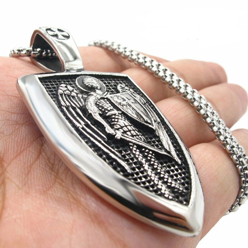 STERLING SILVER ST MICHAEL THE ARCHANGEL PENDANT WITH CHAIN 5/8" x 1/ Sterling Silver St Michael Pendant Michael means ‘who is like god?’. Michael the archangel pendant on a light rhodium heavy curb, 24 chain with clasp. One of our most popular. Michael pendant in two different sizes. ★ st michael archangel pendant ★ handcrafted st michael archangel pendant/necklace for men and women. high quality sterling silver saint michael pendants and necklaces. Accommodates chains up. Sterling Silver St Michael Pendant.